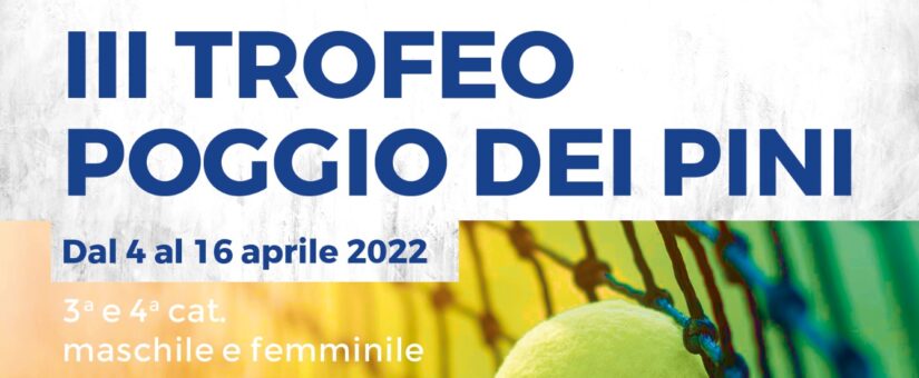 Il PoggioSportVillage ha il piacere di organizzare il 3° Trofeo Poggio dei Pini, torneo FIT riservato a tutti gli atleti di 3^ e 4^ categoria sia Maschile che Femminile dal 4 al 17 Aprile 2022. Le iscrizioni per i 4^ cat. dovranno pervenire entro le ore 12,00 di sabato 2 Aprile, le iscrizioni dei giocatori per i 3^ […]