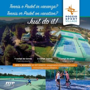 L’estate è il periodo migliore per fare sport Prenota un campo da tennis o da padel con la famiglia e i tuoi amici per un’ora di salute e benessere, immersi nel verde del PoggioSportVillage