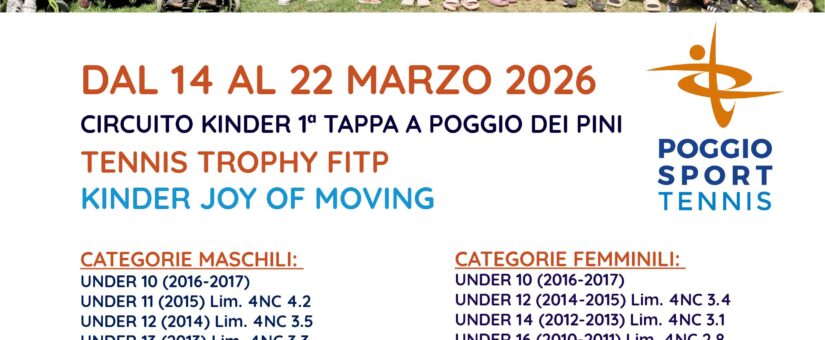 Il Poggio Sport Village organizza la prima tappa Sarda dell’anno del Torneo Giovanile Tennis Trophy Kinder – Joy of moving 2026Le gare in programma sono: